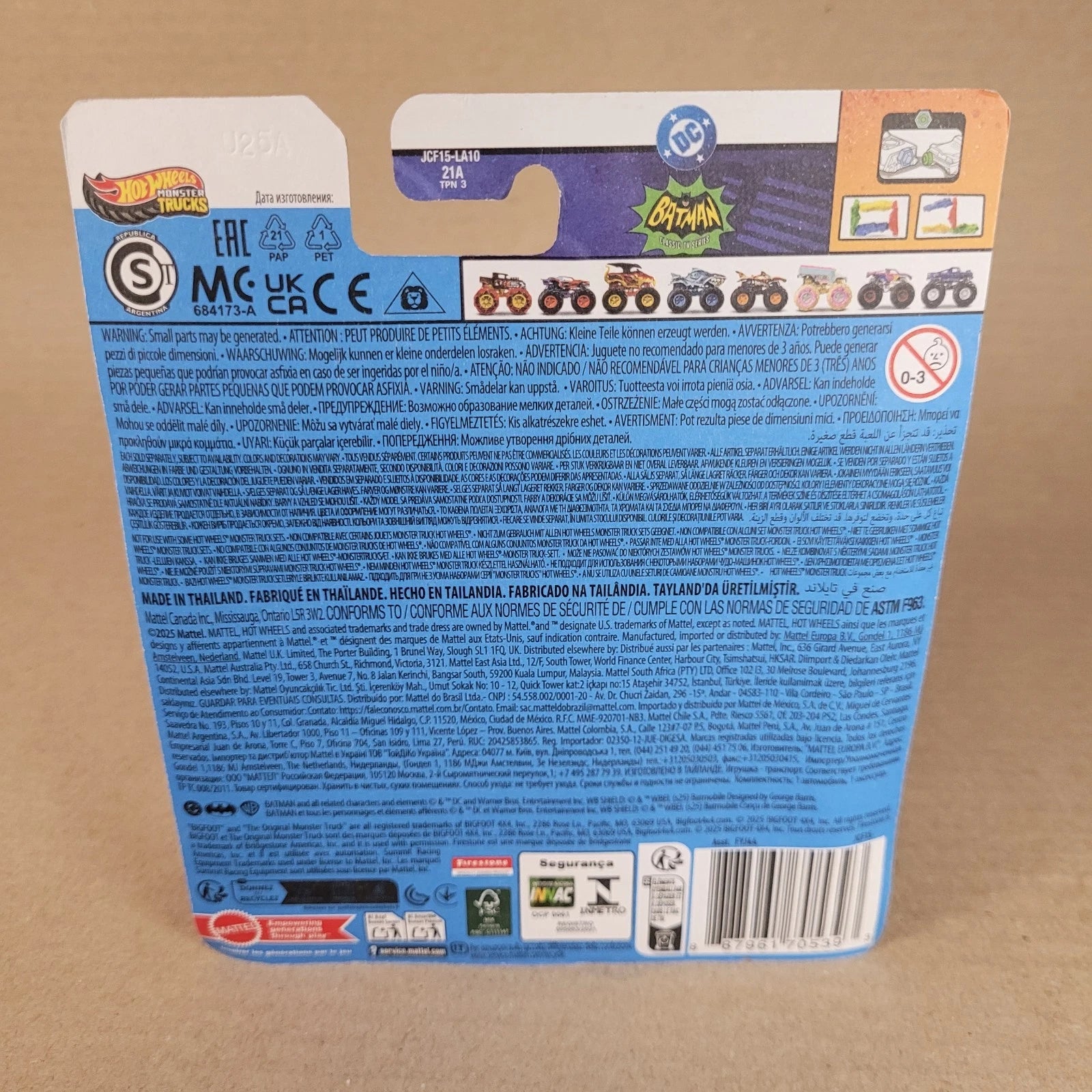 The 2025 Hot Wheels Monster Trucks Treasure Hunt Batman Batmobile ZAMAC TV Series is a collectible diecast vehicle made by Hot Wheels. This 1:64 scale Monster Truck features the iconic Batman Batmobile from the ZAMAC TV Series, designed in a sleek silver color. Perfect for fans of Batman and collectors of contemporary diecast vehicles, this model is part of the Hot Wheels Monster Trucks series, suitable for children aged 3 and up.